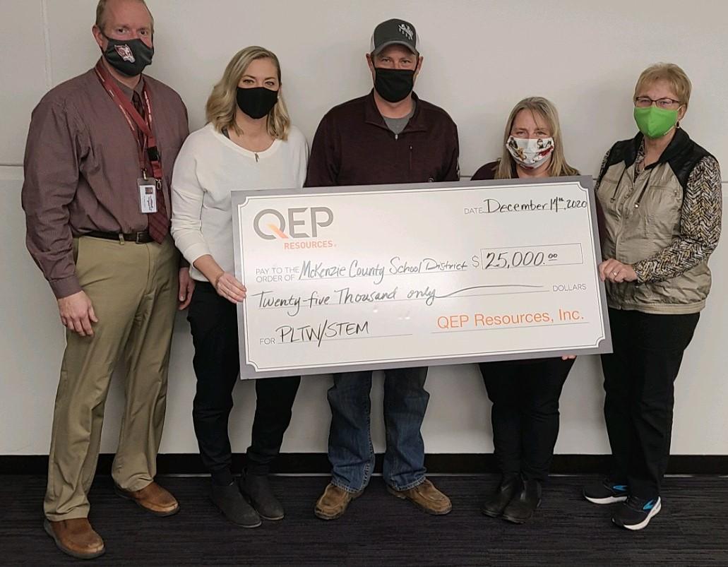 QEP recently donated $25,000 towards equipment for Project Lead the Way and other STEM activities for grades kindergarten through eighth at McKenzie County School District #1.